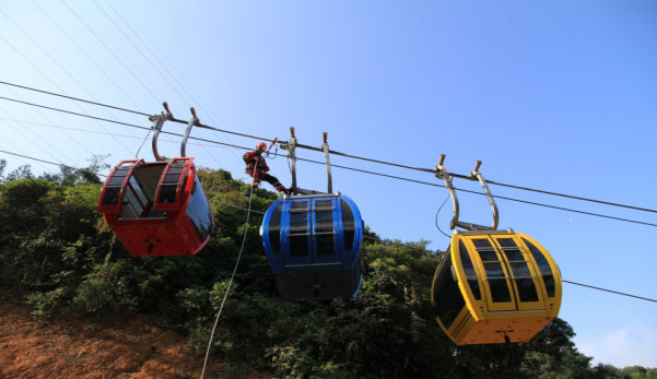 近期深圳市赛为高空工程有限公司(以下简称赛为高空)针对深圳求水山索道开展了索道救援演习,索道发生故障,游客滞留在吊箱中。现在国内的索道救援还非常落后,也不安全。而赛为高空采用的绳索技术救援是国际上最先进最安全的救援技术。